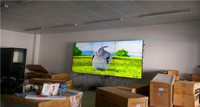 廈門集美蓮花國(guó)際小區(qū)物業(yè)為了本小區(qū)的安防需要,在其小區(qū)監(jiān)控系統(tǒng)中,使用了雅迅達(dá)公司的液晶拼接屏。該工程使用的是5.3mm拼逢的46寸低亮3*3的液晶拼接屏,采用鋁條掛墻配活動(dòng)支架安裝方式。其它配套設(shè)備包括一臺(tái)1進(jìn)十出VGA分配器,拼接屏使用VGA信號(hào)源,用于小區(qū)監(jiān)控信息。屏幕安裝好后進(jìn)行了信號(hào)調(diào)試,并演示給客戶看,培訓(xùn)客戶使用。看完效果后,客戶滿意簽收。