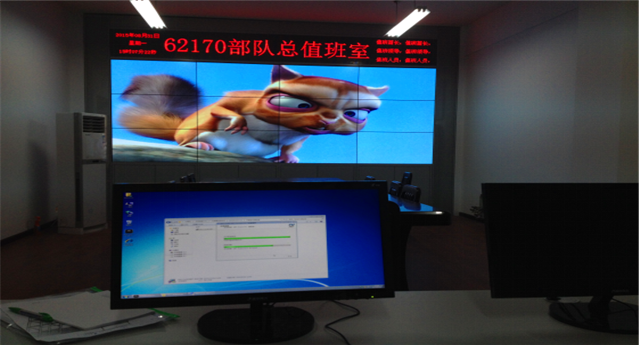 武漢62170部隊監(jiān)控指揮室采用的是雅迅達(dá)46寸DID窄邊液晶拼接屏升級后的第四代智能液晶拼接(PJ-B461P-6S)。以機柜安裝的形式,3×4的高清拼接墻在智能無線控制下,使高清畫面(1920×1080)切換更加方便;其升級后的第五代自動色彩引擎IPCE-5,能自動調(diào)節(jié)色彩的飽和度,使圖像無限逼真。效果顯示完美,客戶表示十分滿意。