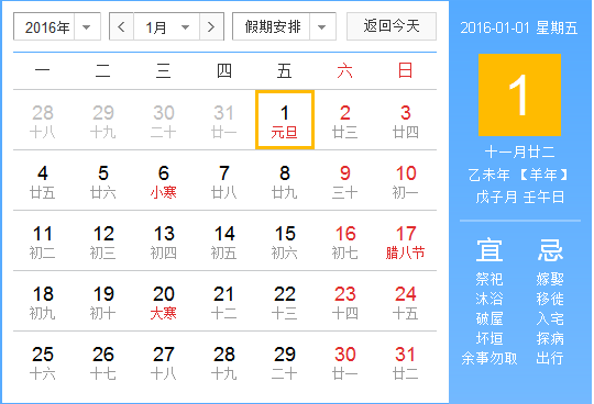 自2016年1月1日(星期五,國(guó)家法定節(jié)假日)至1月3日(星期日)放假,共3天。2016年1月4日(星期一)正常上班。節(jié)日服務(wù)熱線:189 0284 0932