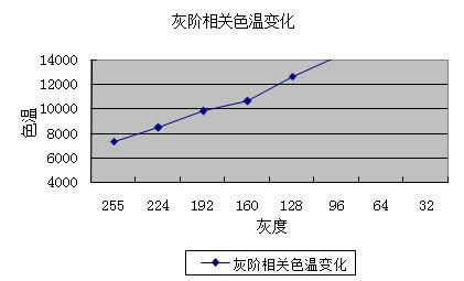 準確。好的色溫一致性并不是依靠面板達到的,驅(qū)動 IC 與面板的配合相對更重要一些。YXD-B228HD-HQ 的色溫一致性表現(xiàn)比較差,隨著灰度的降低色溫曲線明顯線上偏轉(zhuǎn),灰階 32 的情況下已經(jīng)高達 35107K。