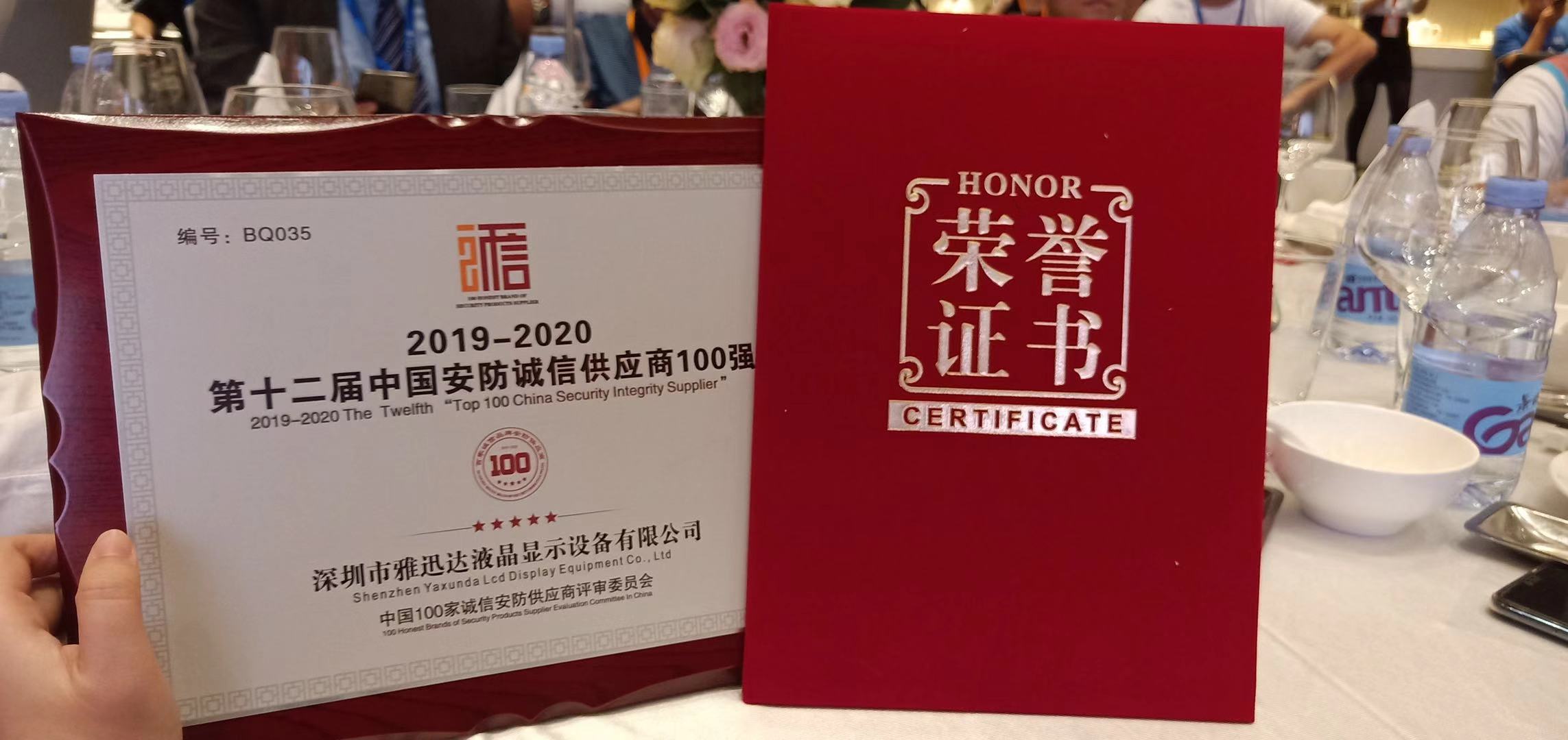2019年10月27日,“第十二屆中國安防誠信供應商100強”頒獎盛典在深圳威斯汀酒店成功舉行。深圳市雅迅達液晶顯示設備有限公司應邀出席頒獎典禮,并憑借在安防行業(yè)的優(yōu)良口碑榮獲“2019-2020年度中國安防誠信供應商100強”的殊榮。