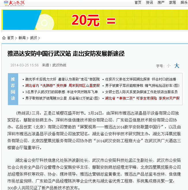 慧聰安防網(wǎng)、CPS中安網(wǎng)、安防市場(chǎng)報(bào)、安防知識(shí)網(wǎng)、中國(guó)安防展覽網(wǎng)、中國(guó)安防網(wǎng)、千家安防網(wǎng)等安防行業(yè)媒體更是爭(zhēng)相對(duì)雅迅達(dá)此次活動(dòng)進(jìn)行了多方位的報(bào)道,“雅迅達(dá)”三個(gè)字高頻率的出現(xiàn)在各大行業(yè)媒體網(wǎng)站首頁及要聞區(qū)。