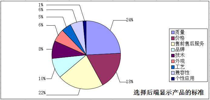 調(diào)查結(jié)果顯示,產(chǎn)品質(zhì)量、售前售后服務(wù)及價格依然是用戶選擇產(chǎn)品的重要杠桿,品牌關(guān)注度33.8%跟隨其后,外觀和軟件兼容性均為21.6%。