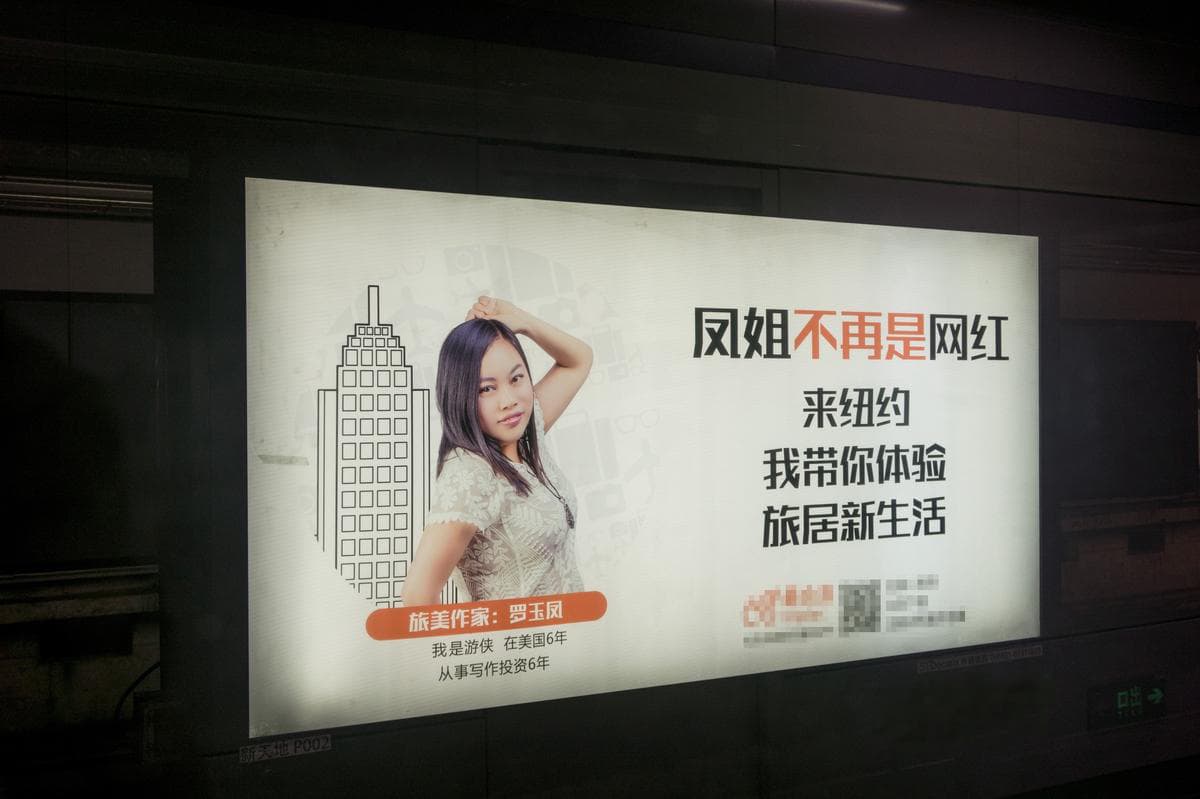鳳姐變身旅美作家 地鐵廣告屏全方位展示 一則跟鳳姐有關(guān)的廣告大幅出現(xiàn)在地鐵站內(nèi),而廣告內(nèi)的內(nèi)容頗為吸睛,因為她的身份已經(jīng)不再是網(wǎng)紅。同時展示鳳姐旅美形象的廣告大屏也引起了廣大關(guān)注。