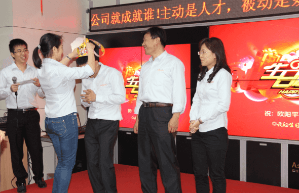 雅迅達(dá)首屆家人生日會(huì)今晨舉辦 與今日在成都舉辦的雅迅達(dá)中國(guó)行活動(dòng)遙相呼應(yīng),雅迅達(dá)深圳總部也喜氣洋洋——全體近百號(hào)員工齊聚一堂,為4月份生日員工過(guò)集體生日,其樂(lè)融融。