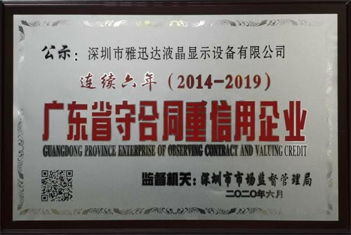 祝賀雅迅達(dá)再次獲得“守合同重信用企業(yè)”榮譽(yù)稱號(hào) 近日,經(jīng)廣東省深圳市市場(chǎng)監(jiān)督管理局審核批準(zhǔn),深圳市雅迅達(dá)液晶顯示設(shè)備有限公司獲得“守合同重信用企業(yè)”榮譽(yù)證書,這是雅迅達(dá)連續(xù)六年獲得該榮譽(yù),公司憑借長(zhǎng)期積累沉淀的強(qiáng)勁...