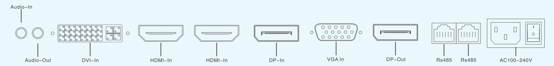 DP環(huán)通,可代替分配器及矩陣的部分功能,支持一屏多顯; 支持4K超高清信號輸入,顯示畫面更細(xì)膩,更清晰; 畫面支持90度,180度,270度翻轉(zhuǎn),支持異行拼接; 自動檢測輸入信號,并自動卻換到該信號源顯示; 內(nèi)部預(yù)留1路HMDI高清信號接口,支持OPS擴(kuò)展; 機(jī)器碼(地址碼)行列地址眼見即所得,填入控制軟件即可; LED亮艷背光源,數(shù)碼降噪,UHD高解析度,24bit色彩還原; 自動調(diào)節(jié)背光亮度和刷新頻率,自動調(diào)節(jié)色彩的飽和度(可選功能)
